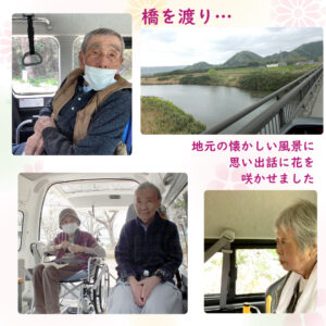 利用者様のご自宅近くも通り、馴染みのスーパーや公園の話等も懐かしそうにされています。
